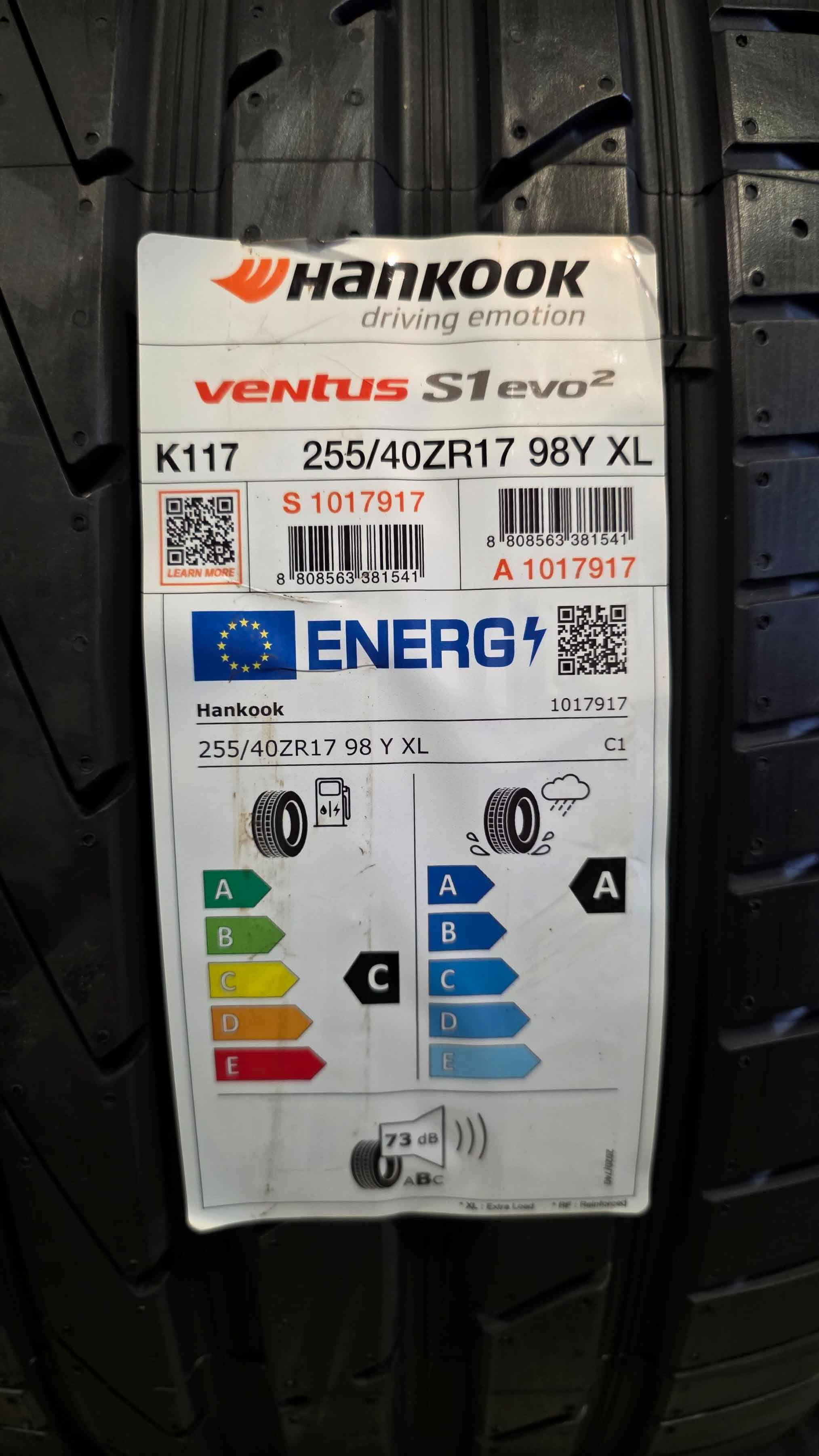 Nové letní pneumatiky Hankook 255/40 ZR17 98Y XL, model Ventus S1 evo² K117 vyrobené v roce 2022. Kód výrobce: 1017917.